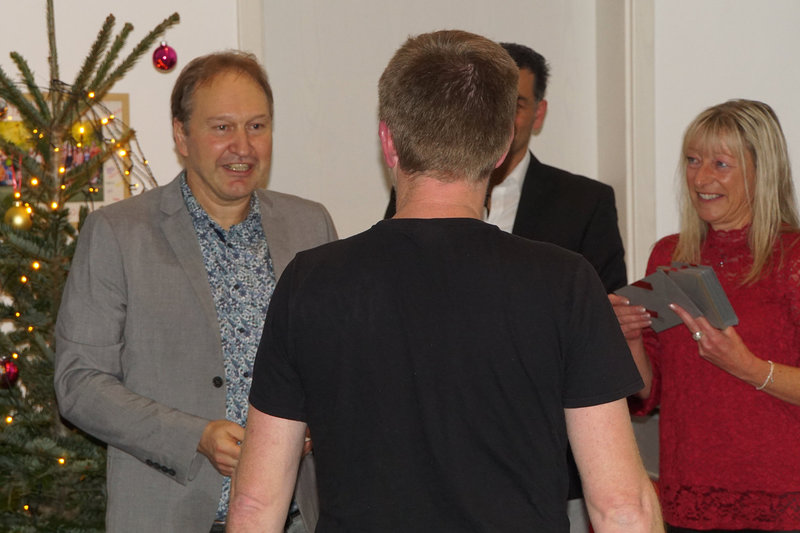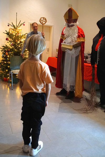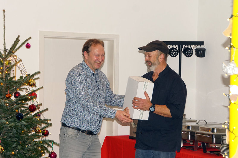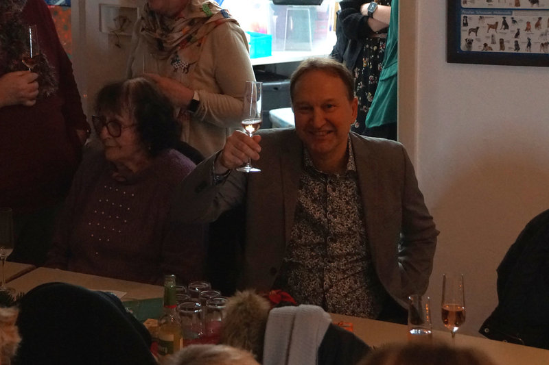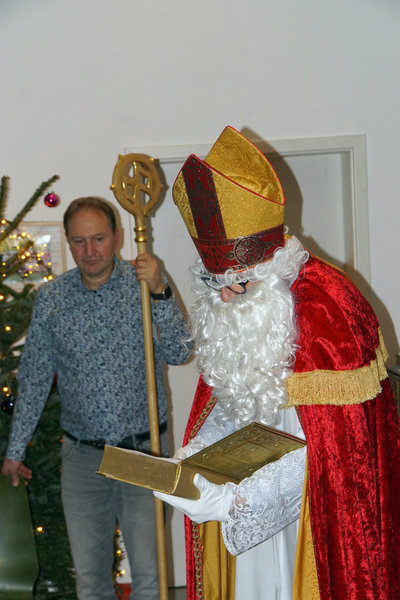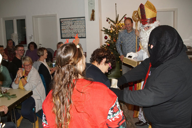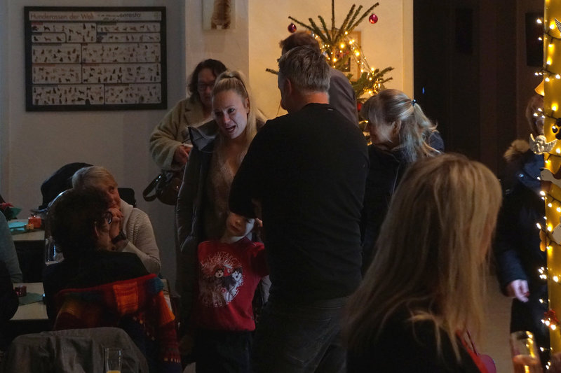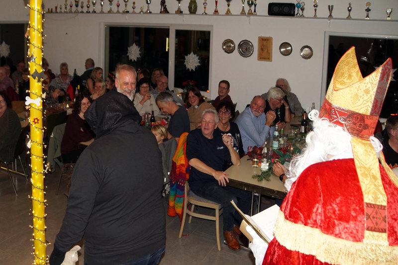 Das Fest St. Nikolaus können wir ja nicht alle Tage feiern. Und so war eine bunte Schar von Vereinsmitgliedern zur Weihnachtsfeier mit St. Nikolausbesuch an und ins Vereinsheim im Erle gekommen. Was für eine schöne Stimmung, was für eine bunte Mischung von Erlebnissen aus dem zu Ende gehenden Jahr. Schon der Einstieg in den Abend war gelungen. Nachdem in bewährter Form Familie Gehr mit ihren Helfern reichlich Vorspeisen und Hauptgerichte aufgetragen hatten, verlagerte sich das Geschehen nach drinnen. Vorstand Ralf Bickel begrüßte alle ganz herzlich und schon war das Buffett eröffnet. Später dann gab es auch noch sehr schmackhafte Nachspeisen, in der Hundesprache "Leckerlis". Ja und dann spielte unser Jungmusiker aus dem Hause Schätzle zwei weihnachtliche Lieder und bereitete damit dem ankommenden St. Nikolaus den Weg. Viele Mitglieder wurden vom Nikolaus mit ihren jeweiligen Arbeitsbeiträgen und Erfolgen im Vereinsleben erwähnt und mit Hilfe von Lea erhielten dann auch alle ein kleines Präsent. Damit war aber noch nicht Schluß mit Danke und bitte weiter so. Ralf Bickel hatte einen ganzen Katalog von besonders zu ehrenden Vereinsmitliedern dabei und mit wunderschönen Blümchen bekam das auch eine besondere Note. Und dann war ja auch noch wichteln angesagt. Auch hier eine wunderschöne Stimmung und ein gespanntes Auspacken der Wichtelpräsente.
