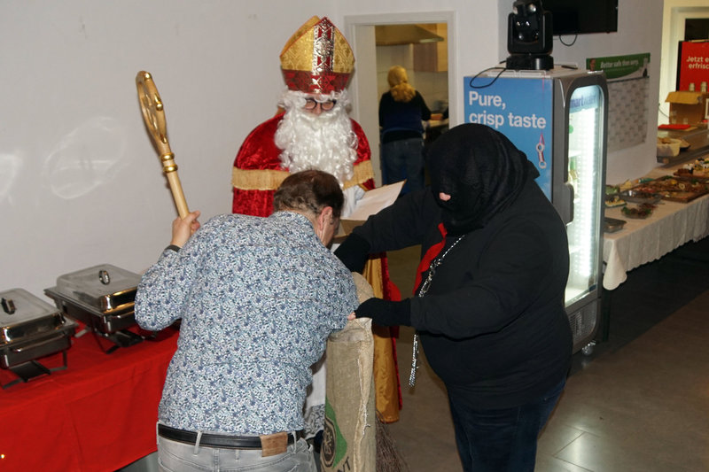 Welch eine Freude, welch ein Umtrieb, welch ein Lachen und Erzählen und später dann auch noch ein Singen. Über 55 Mitglieder und Freunde unseres HSV waren in das Vereinsheim im Erletal gekommen. Und wenn wir nun zurückblicken, dann sind alle Erwartungen erfüllt worden. Das fröhliche Zusammenstehen und Zusammenfinden zum Start, Klasse. Dann langsam Plätze suchen und einnehmen, Klasse. Dann die erlesenen Aromen und Ansichten eines großartigen Buffets, Oberklasse. Irgendwann konnte unser Vorstand dann die Gästeschar offiziell begrüßen und auch das Buffet eröffnen. Genuss pur. Es wurde merklich ruhiger im Raum und bald schon kündigte sich auch hoher Besuch an, St. Nikolaus mit seinem Helfer Krampus. Was gab es da für schöne Geschichten und Begebenheiten aus dem goldenen Buch. Und alle wurden auch belohnt mit einem Geschenk aus Krampus's Sack. Der Ehre nicht genug bedankte sich der Vorstand noch bei den vielen Freiwilligen und Helfern mit reichlich Blümchen und Geschenkchen und natürlich Drückerchen. Dann war auch noch ein sehr schmackhafter Nachtisch in der Warteschleife, bevor dann die Wichtelrunde angesagt war. Auch hier wieder Freude über den Einfallreichtum in den Geschenken. Alles in Allem: Ein würdiger, wunderschöner, kurzweiliger und sehr geselliger Abend in der Weihnachtszeit. Danke, Danke, Danke, Danke.