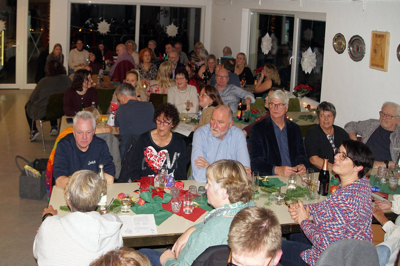 13. Dezember 2025, was für ein schöner und stimmungsvoller Abend. Mit einer unglaublich guten Stimmung trudelten die Gäste ein. Ältere, Jüngere, Mädels, Jungs, Freunde und Mitglieder, alles war vertreten. Mit einem wunderbar prickelnden Rosè war die Begrüßung am Eingang schon einmal ein tolles Zeichen. Bald wurden auch die Leckereien für die Bufetts aufgetragen. Und es ging richtig fröhlich zu. Irgendwie ist die HSV-Weihnachtsfeier ein ganz besonderes Datum im Jahresverlauf. Erneut konnte unser Vorstand Ralf Bickel ein großes Lob, garniert mit einem Weinpräsent, an unsere bewährte Bewirtungsfamilie Gehr überbringen. Es wurde geschmaust und genossen. Und mit ein wenig Abstand kam dann doch der leibhaftige St. Nikolaus mit seinem Krampus. In seinem dicken goldenen Buch mit schätzungsweise 5399 Seiten hatte er allerlei Lob, aber auch freundliche Hinweise für Optimierungen dabei. Und das alles wurde dann auch mit kleinen Präsentchen aus dem Überraschungssack des Krampus ergänzt. Sogar Weihnachtslieder konnten mitgesungen werden. Es war einfach die reine Freude, die dann noch mit viel Lob, mit Blumen, mit Gutscheinen etc. für besondere Leistungen an unsere große Helferschar abgerundet wurde. Da können wir nur sagen: Schönen Advent noch, besinnliche Weihnachtstage und dann einen guten Start in das Vereinsjahr 2026.